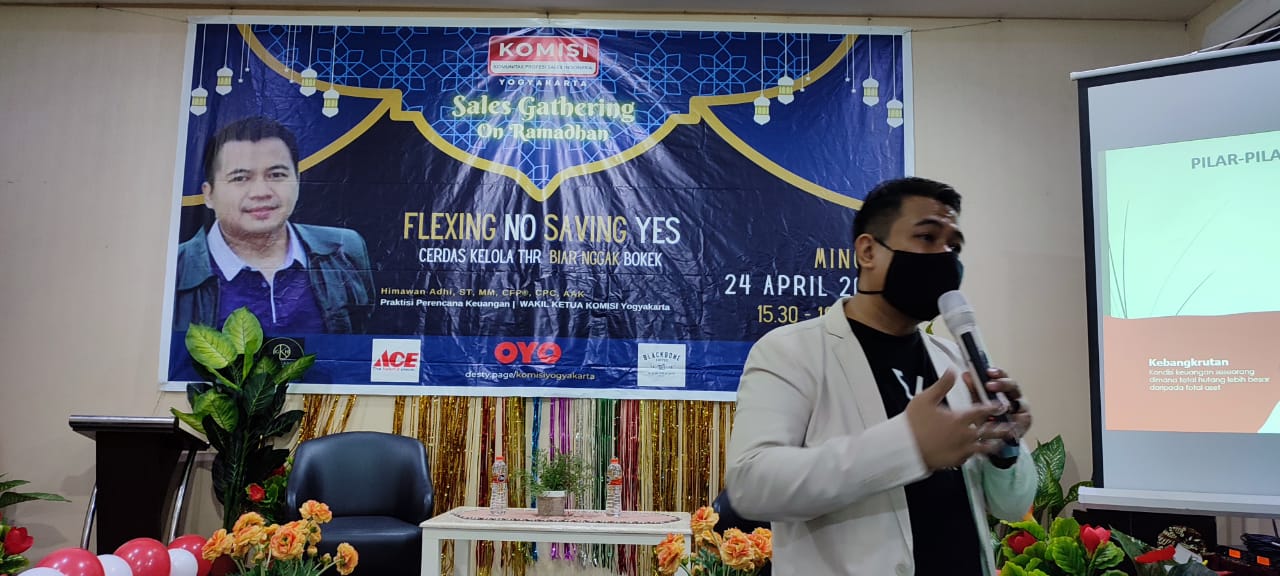 YOGYAKARTA – KOMISI atau Asosiasi Komunitas Sales Indonesia chapter DIY menggelar Sales Gathering on Ramadhan (SEGER) sebagai acara kumpul komunitas tahunan rutin setiap Ramadhan yang diisi seminar dan diakhiri dengan buka puasa bersama. Mengangkat tema “Flexing No, Saving Yes! Cerdas Kelola THR biar gak Bokek,” acara tersebut menghadirkan pakar perencana keuangan Himawan Adhi ST. MM, CFP, CPK, AAK di Hotel Grand Kangen (24/04/2022).